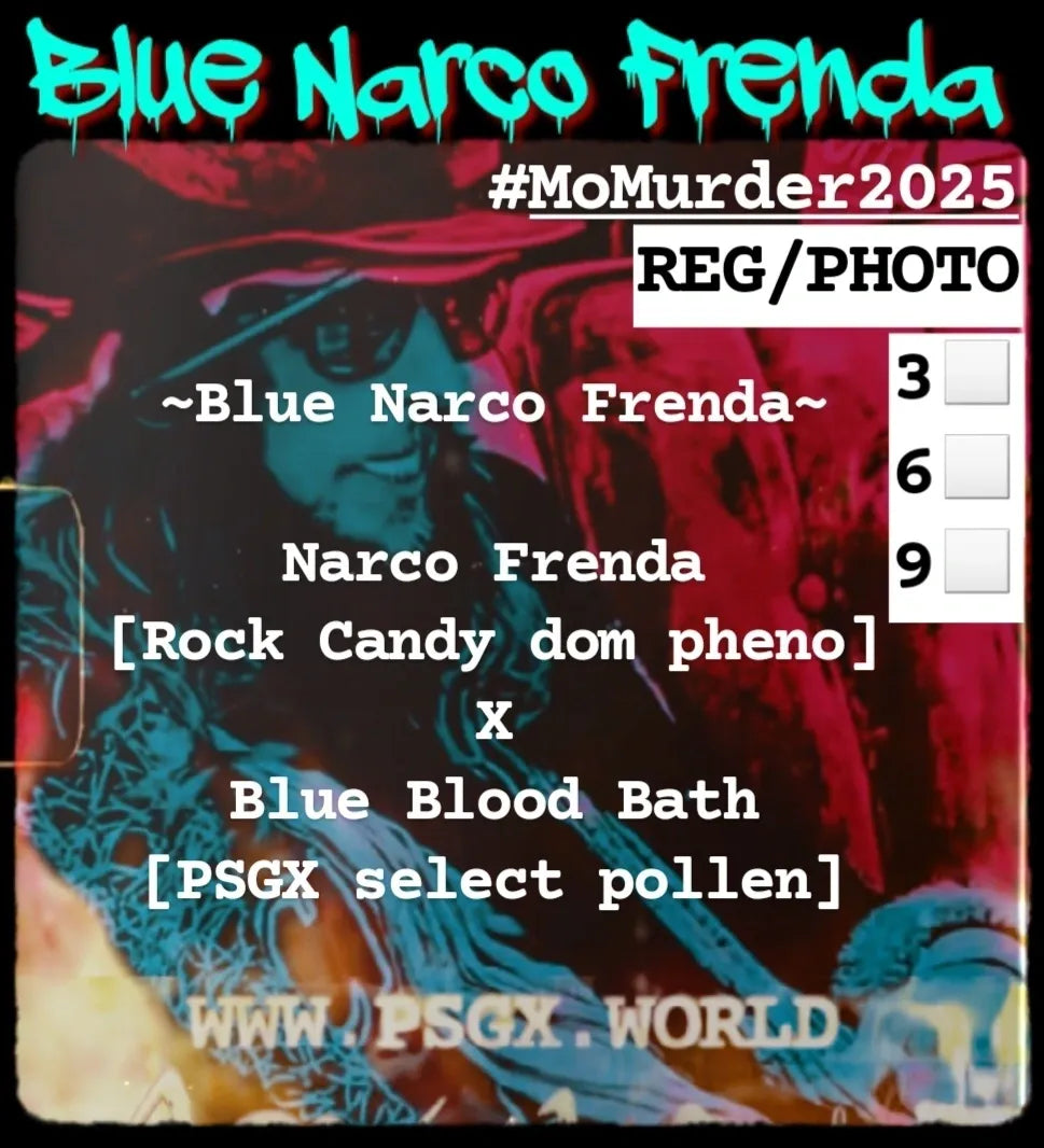 • Genetik Narco Fremda ( Rock Candy dom pheno) x Blue Bloodd Bath (PSGX select pollen)